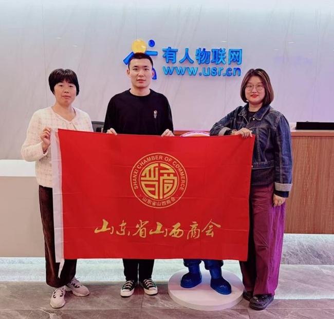 (商会理事、山东黄橙商贸有限公司总经理王秋莲一同参加走访活动)